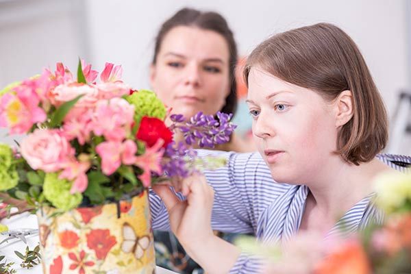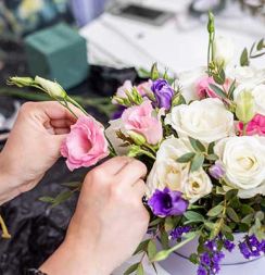 Подбирать цветочные материалы и составлять из них букеты