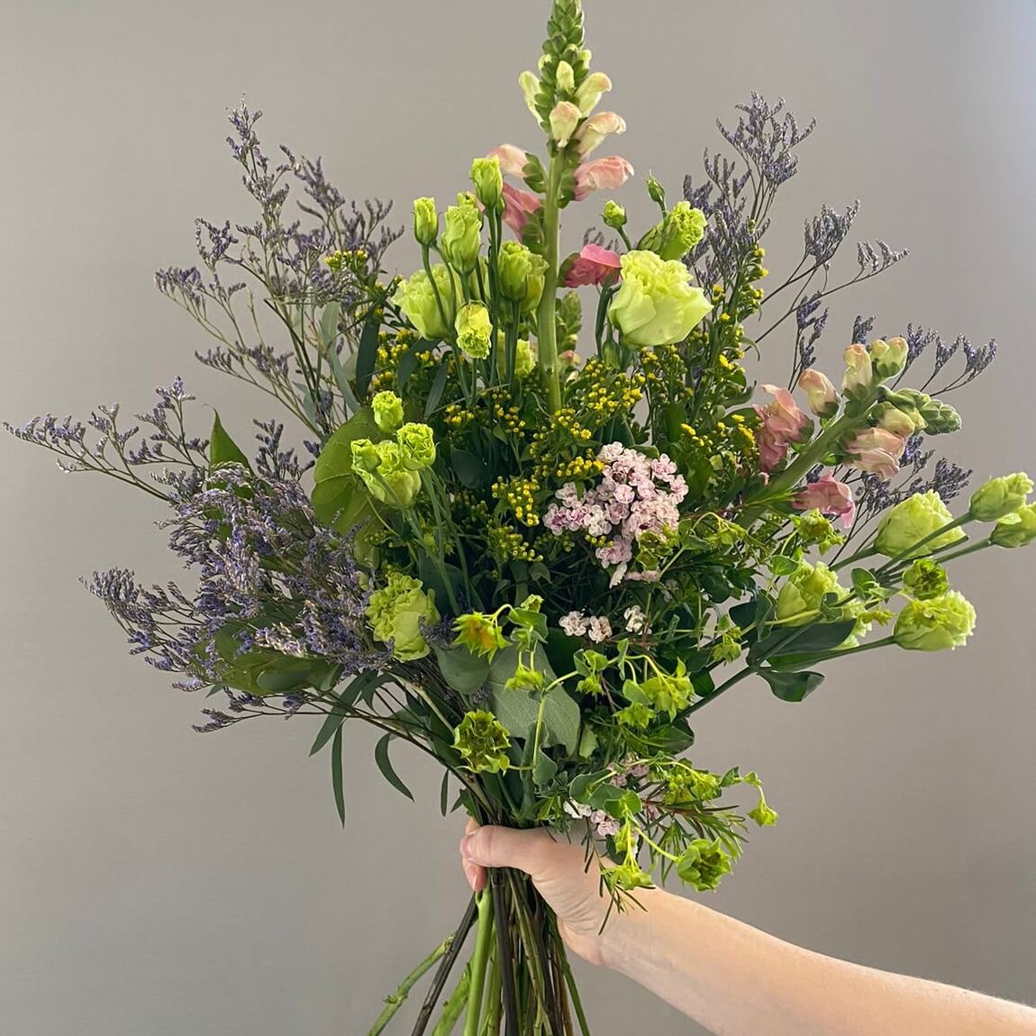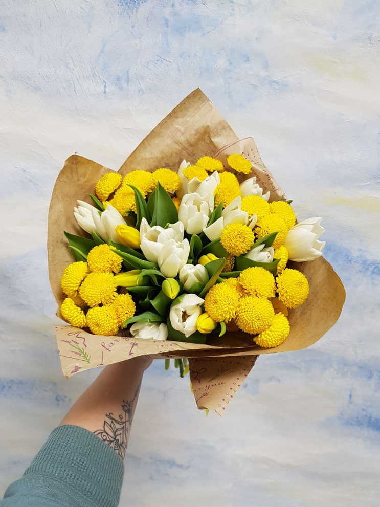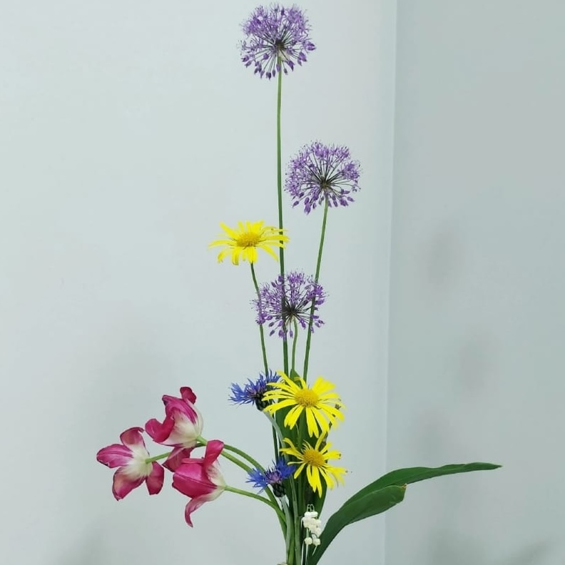 Создавать букеты из различных сезонных цветов и материалов